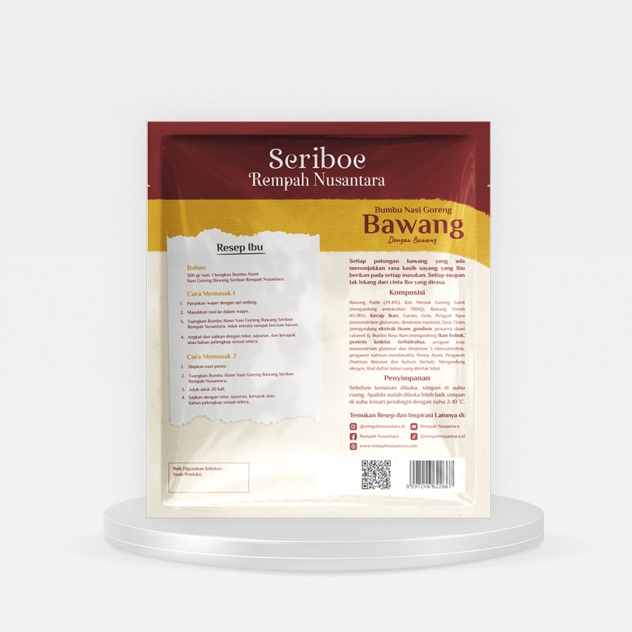 Dengan Bumbu Komplit Nasi Goreng Oriental semua jadi lebih mudah, Tidak perlu minyak goreng untuk masak Bumbu sudah matang dan tidak perlu tambahan bumbu lain Menggunakan bahan-bahan fresh dan alami Isi Kemasan : 6 sachet Bumbu Komplit Nasi Goreng Oriental Sertifikat : HALAL MUI Sertifikat : BPOM Minimum pembelian 2 pcs, bisa digabung dengan varian yang lain dengan harga yang sama.